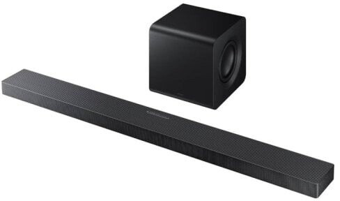Soundbar + Subwoofer Samsung. Typ subwoofera: Bezprzewodowy. Liczba kanałów: 3.1.2. Komunikacja: Bluetooth, Wi-Fi, AirPlay, Chromecast, HDMI eARC, HDMI. Złącza: HDMI, Wejście optyczne, HDMI eARC